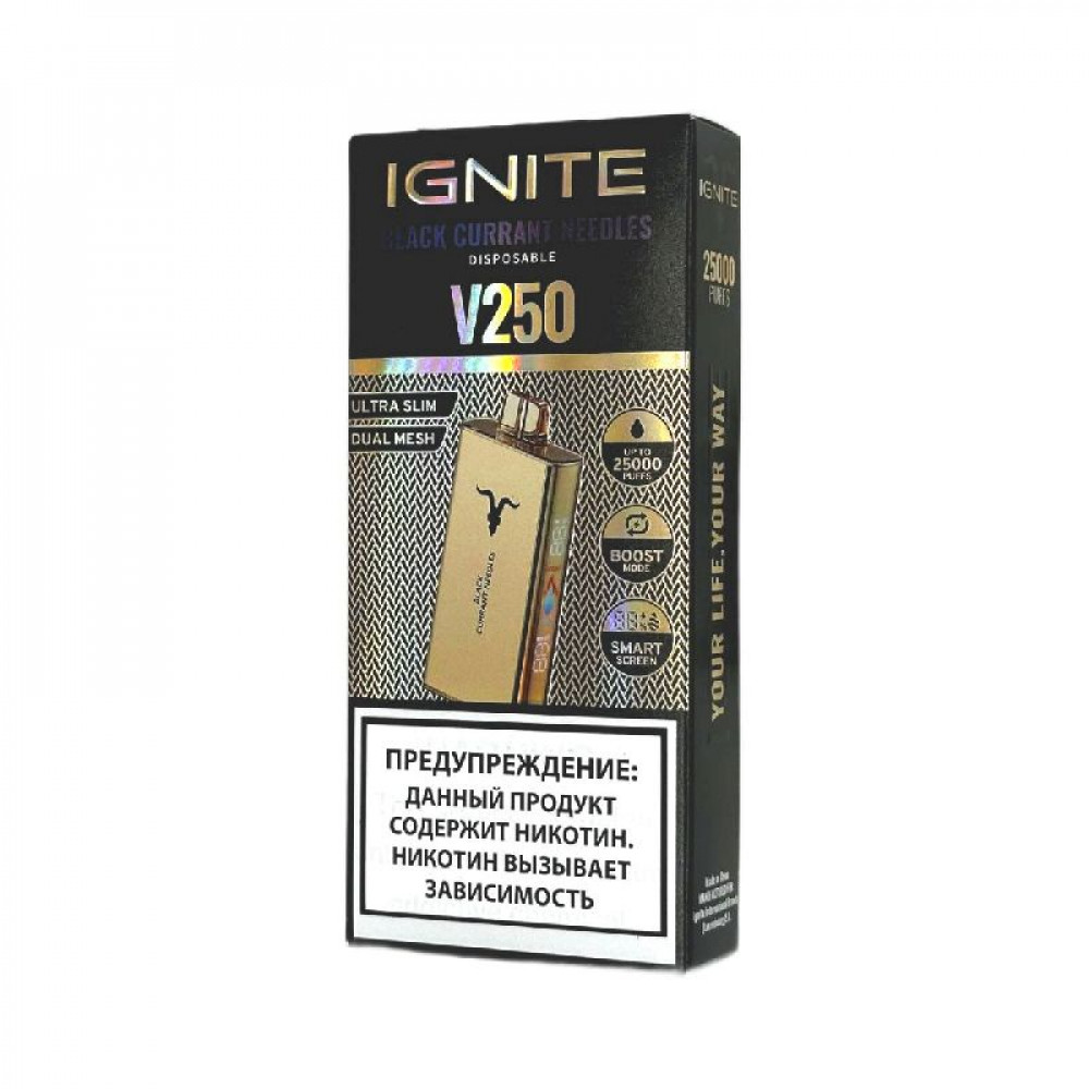 • Электронная сигарета Ignite V250 Gold 25000 - Black Currant Needles (Черная смородина хвоя)